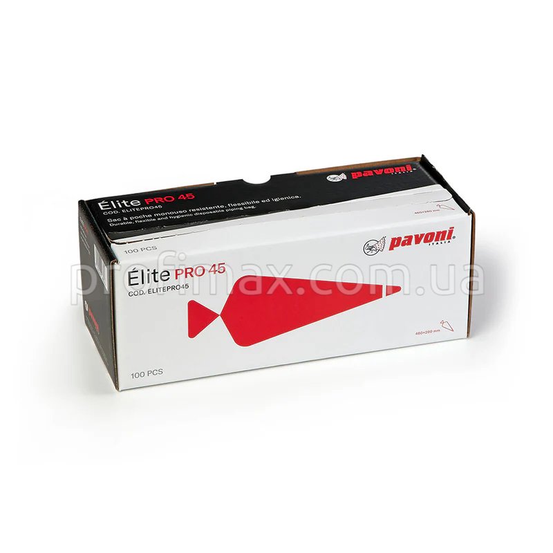 Pavoni ELITEPRO45 - це одноразовий кондитерський мішок із багатошарового матеріалу, міцного, гнучкого та гігієнічно безпечного. Він гладкий всередині, щоб облегчить вихідний продукт. Крім того, завдяки спеціальному покриттю “non slip” на зовнішній стороні, мішок зручно використовувати, забезпечується ідеальний захват і дуже легкий захват навіть мокрими руками.