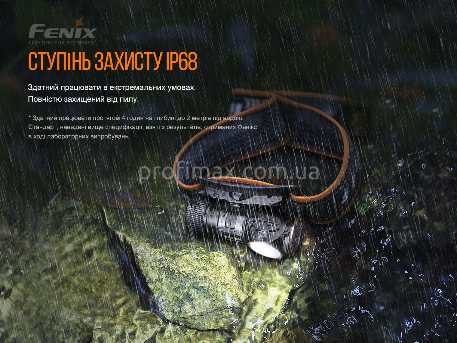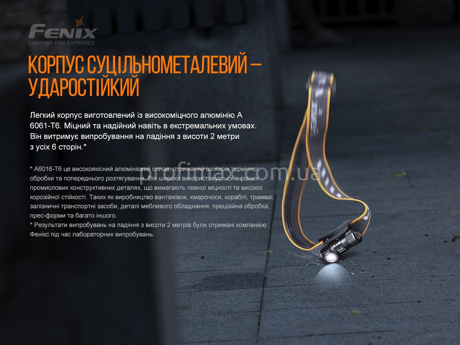 Fenix HM50R V2.0 - компактний, надійний і простий у використанні налобний ліхтар, який забезпечує біле і червоне освітлення, виготовлений з міцного водонепроникного корпусу. Виконаний із застосуванням якісного алюмінію і легких зносостійких матеріалів. Без наслідків переносить падіння з двометрової висоти, також запросто переносить вплив води, маючи стандарт водонепроникності IP68.