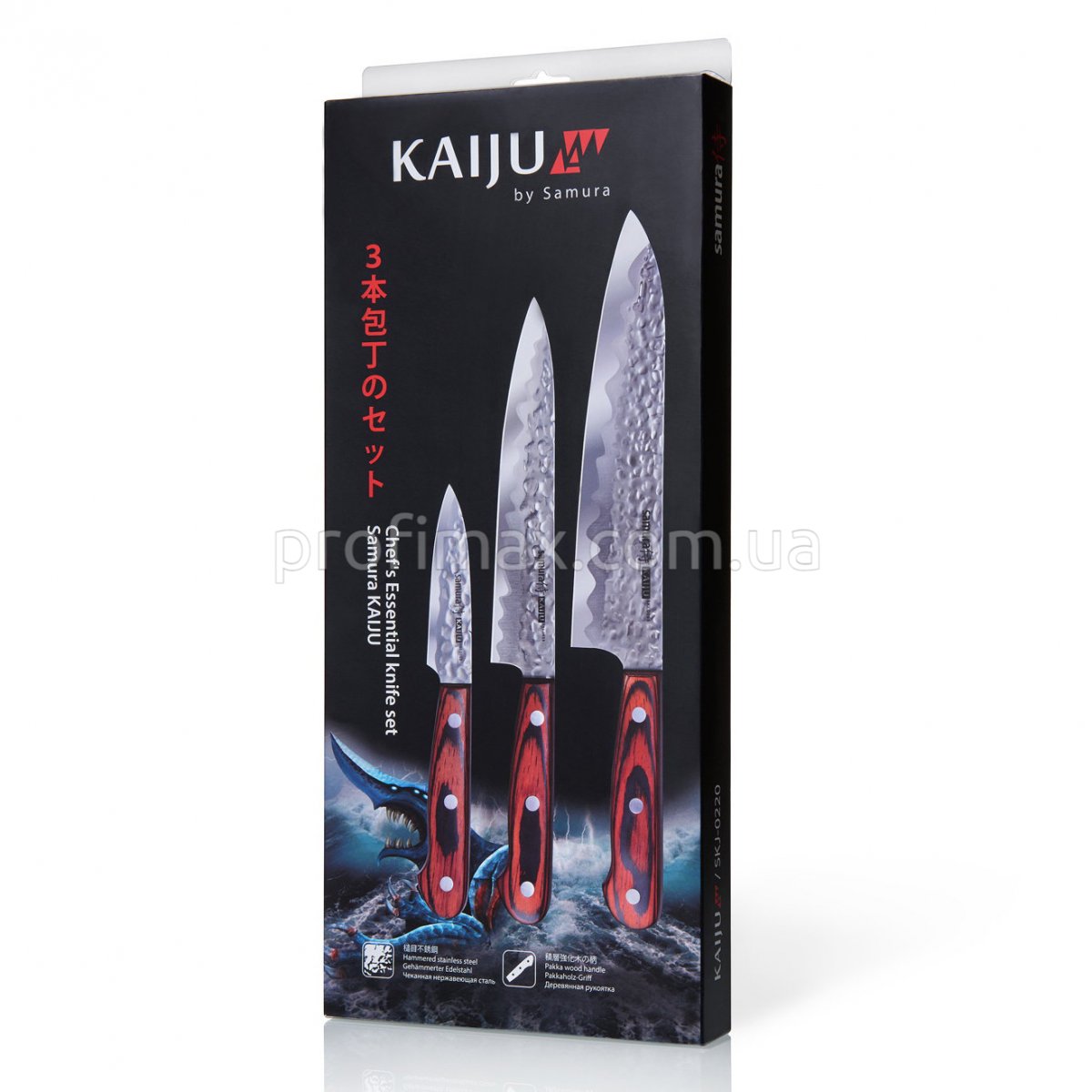 Практичний і зручний набір з 3 ножів Samura Kaiju SKJ-0220 "Кухарська трійка". Усі самі необхідні ножі для кухні в одній коробці: Овочевий, універсальний і європейський Шеф.