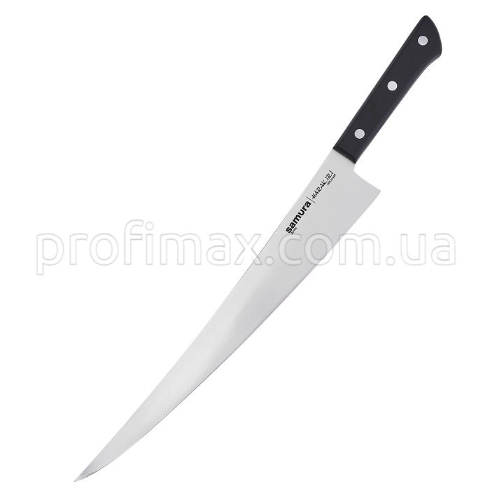 Ніж кухонний для тонкої нарізки Samura Harakiri SHR-0049B - ніж з довгим, тонким вузьким лезом, чудово підходить для нарізки м'ясного й рибного філе, незамінний при готуванні японських рибних блюд.