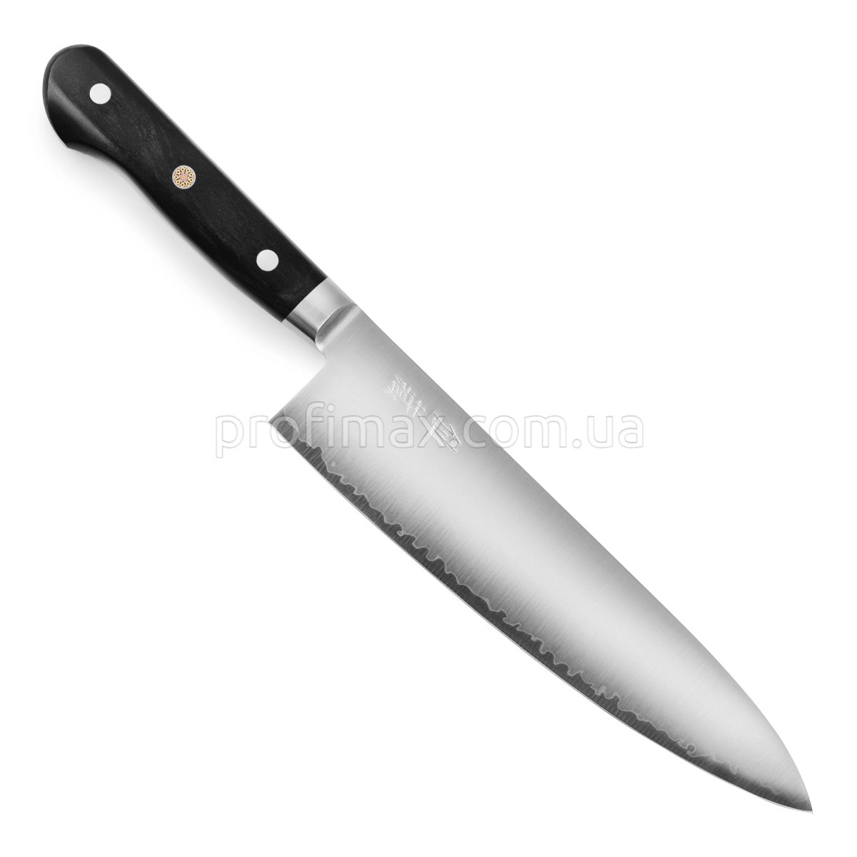 Матеріал ручки Pakkawood - ламінована армована деревина, стіка до вологи, температури та навантажень. Цей матеріал виготовляється з натуральної деревини, просоченої смолою під високим тиском в вакуумі, для надійності і довговічності. Мозаїчна шпилька, додана в центр ручки, створює японське враження та є центральною точкою дизайну.