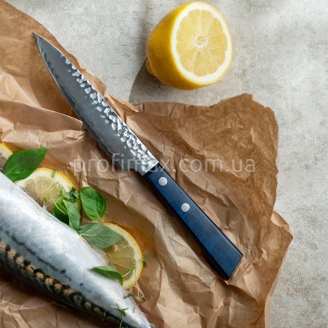 Універсальний ніж Yaxell Blue Breeze 34602, з довжиною леза 12см - невеликий ніж для різноманітних кухонних завдань: різки, очистки овочів і фруктів, для зелені, нарізки мясниих виробів, колбас, сирів. Незамінний для більшості робіт, там, де великі ножі будуть завими.