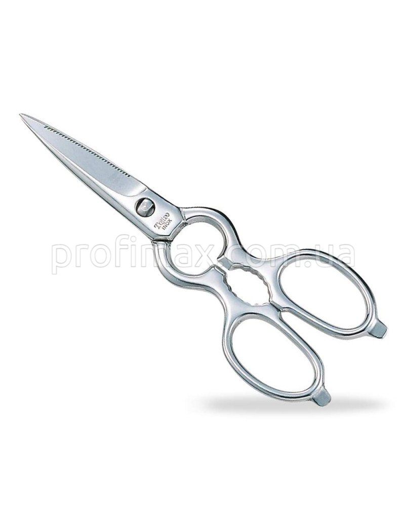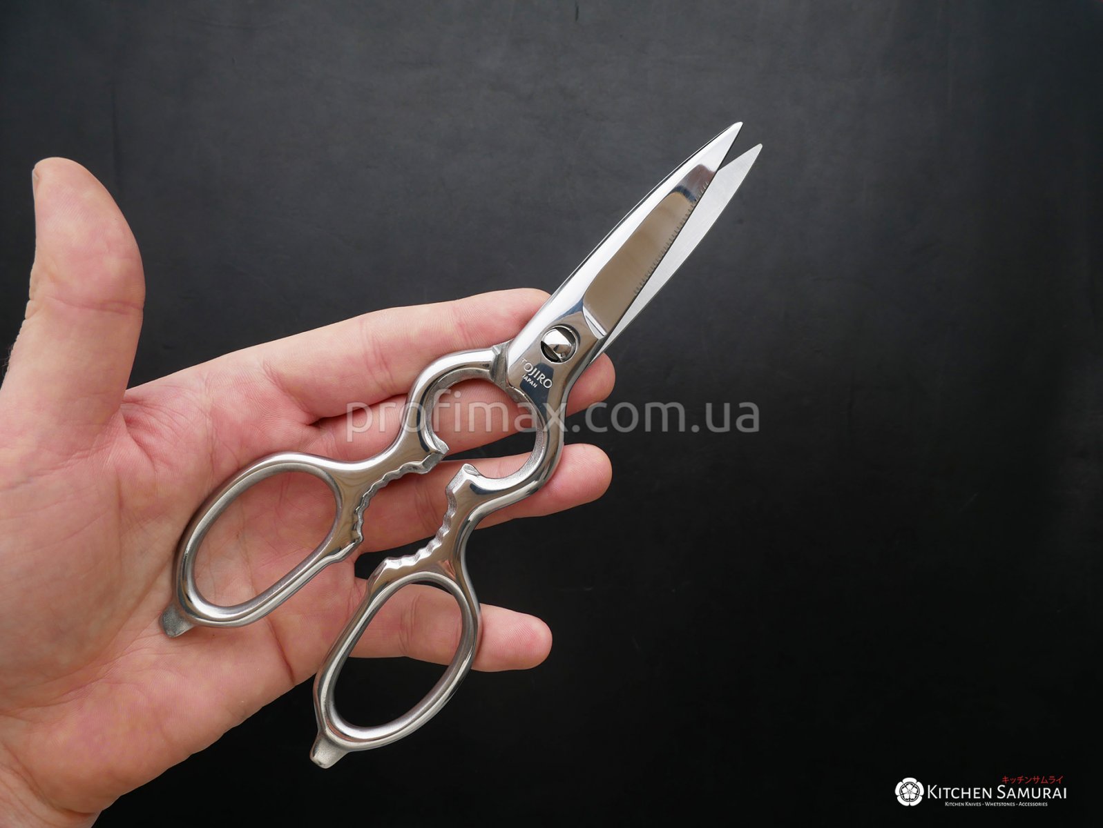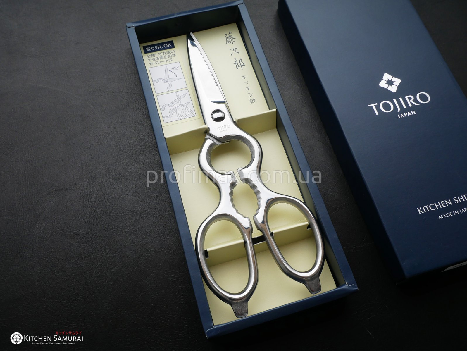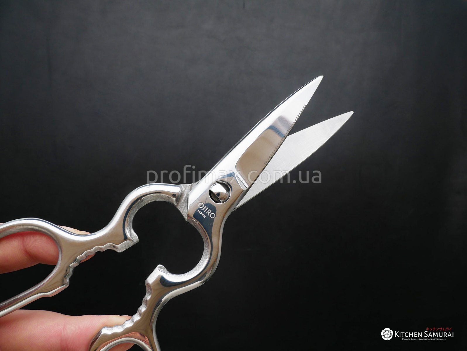Tojiro FK-843 универсальные ножницы с дополнительным набором функций, которые могут использоваться для орехов, открывать банки и многое другое (плавники, пластиковые упаковки, обрабатывать курицу и т. д.). Такой универсальный инструмент незаменим на любой кухне.