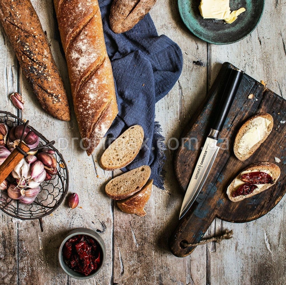 Samura Damascus SD-0021 самый популярный из всех ножей. Легкий и многофункциональный нож для резки небольших овощей и фруктов, колбасы, сыра и т.д. Один из самых нужных на кухне ножей (входит в «поварскую тройку»)