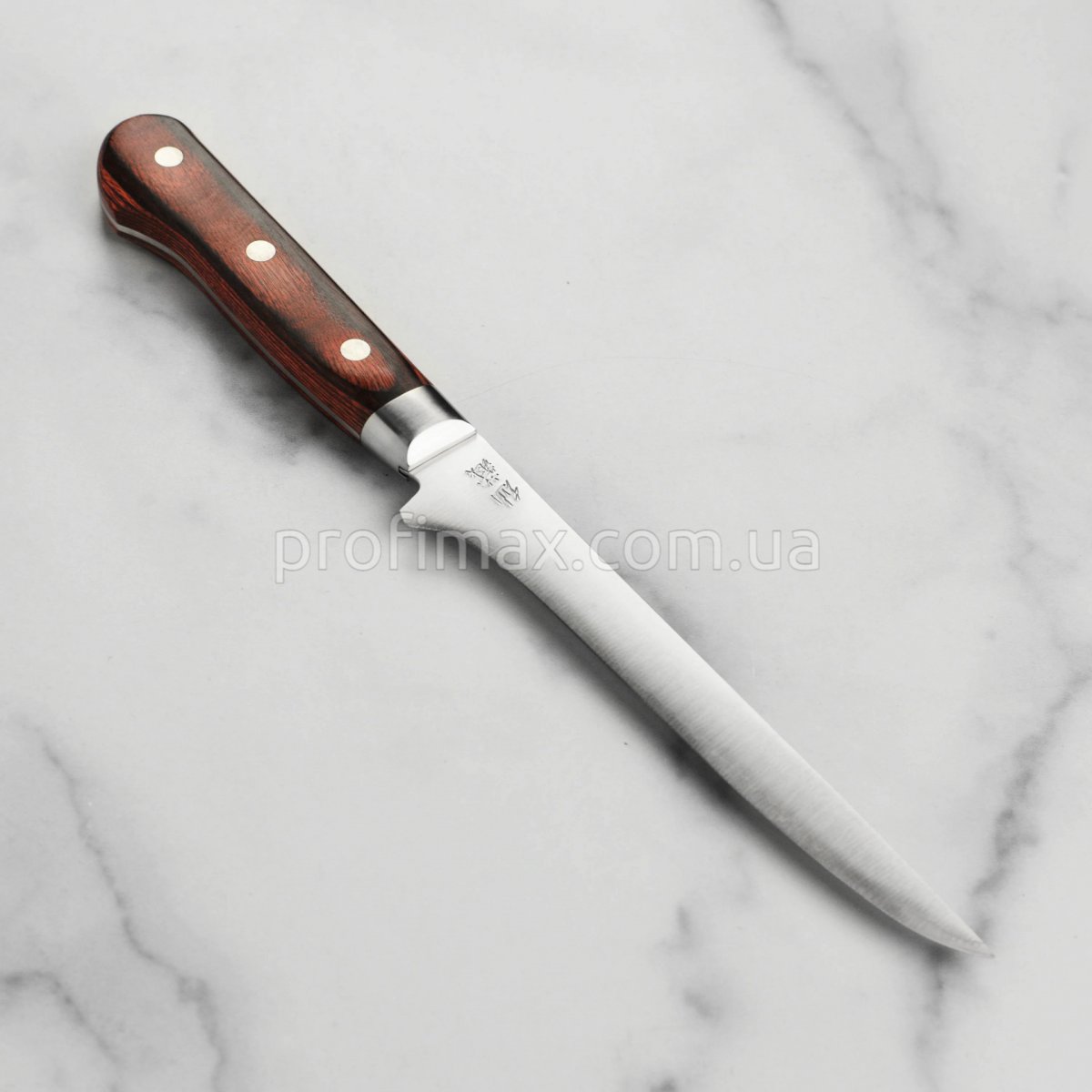 Suncraft SENZO Clad Boning – это нож, предназначенный для обработки мяса. Он имеет характерное, очень узкое лезвие с острым кончиком, благодаря которому можно легко маневрировать вокруг костей, между суставами или среди сухожилий и хрящей сырого мяса. Предназначен для нарезки сухожилий, отделения мяса от костей, срезки жира, филетирования.