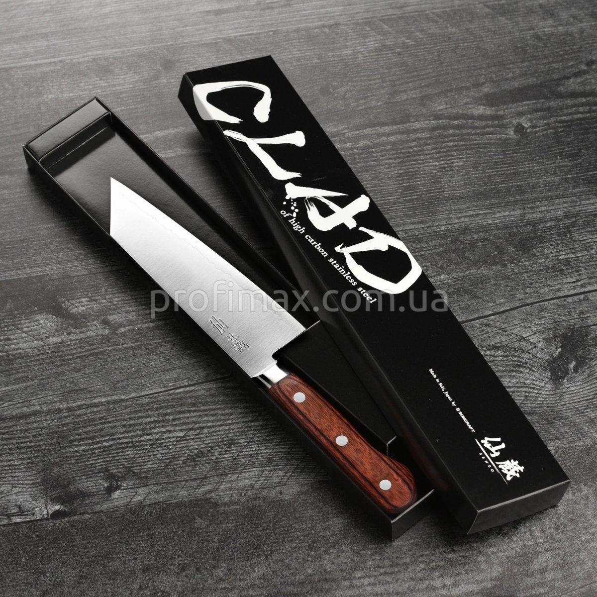 Японские ножи Suncraft&SENSO CLAD характеризуются как доступные качественные кухонные ножи, выполненные из надежных материалов и имеющие превосходный баланс качества и цены. Лезвия ножей этой серии изготовлены из 3-слойной стали AUS-10. Ручка из Pakkawood коричневого цвета - это ламинированная древесина ценных пород, пропитанная смолой в вакууме под высоким давлением. Он характеризуется очень высокой стойкостью к теплу и влаге, и был разработан специально для ручек ножей, разработан прежде всего для долговечности и устойчивости к износу