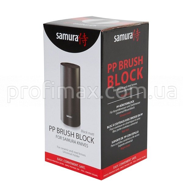 Samura FUSION KBF-101 универсальная черная браш-подставка для компактного, гигиеничного и бережного хранения стальных и керамических ножей. Уникальность, и в то же время простота конструкции, позволяющей бережно хранить одновременно ножи со стальными и керамическими лезвиями. В зависимости от размера, в браш-подставку Fusion входит до 7 ножей. Браш-подставку легко вымыть, достав пластиковый накопитель-щетку, под проточной водой или в посудомоечной машине.