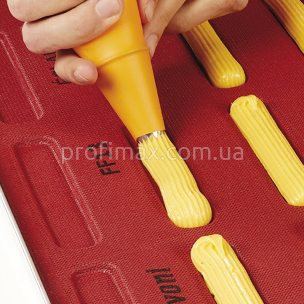 Силиконовый коврик с микроперфорацией и антипригарным покрытием. Микроотверстия обеспечивают оптимальное распределение тепла и позволяют тесту схватываться за них, чтобы получить идеальный результат. Блокнот поставляется с напечатанными контурами для изготовления эклеров идеального размера.
