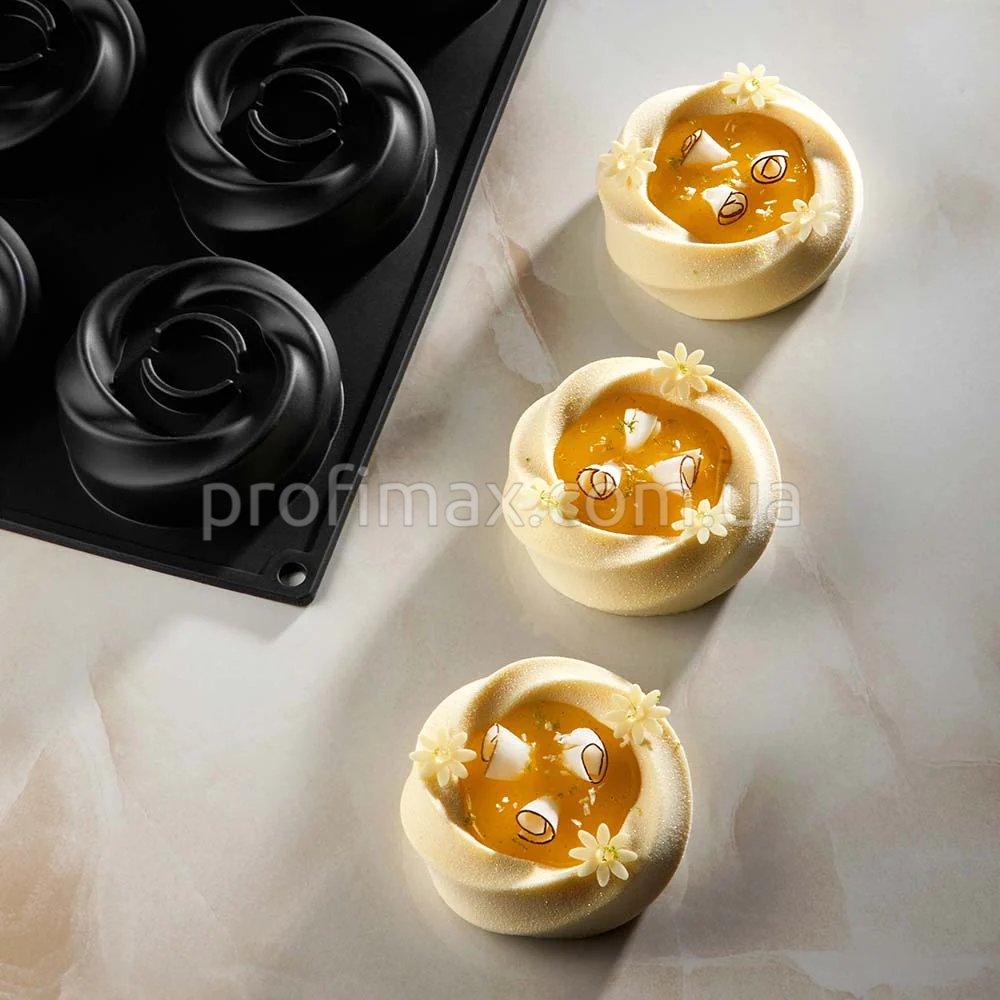 PX43117 KARMA – однопорционная форма Pavoni Italia, созданная в сотрудничестве с шеф-кондитером Франческо Бочиа. Эта форма предназначена для приготовления элегантных и изысканных десертов, идеальных для особых случаев и презентаций шеф-повара.